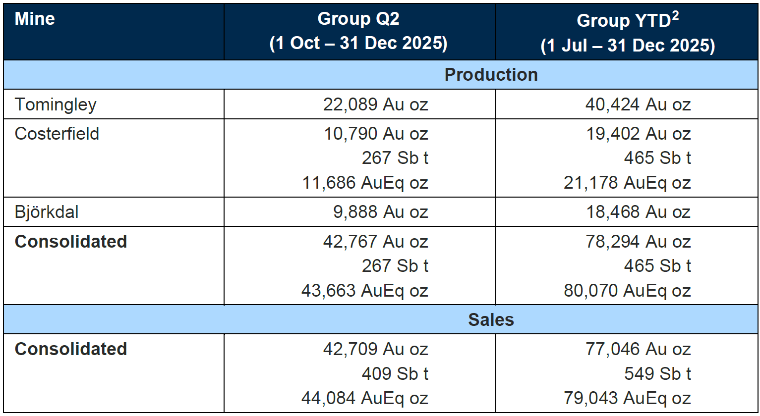 ² Group YTD Production calculated on basis of 100% contribution from Tomingley, Costerfield and Björkdal for relevant period. As the merger with Mandalay Resources completed on 5 August 2025, Alkane’s FY2026 statutory reported production will reflect production from Costerfield and Björkdal only from that date. See ALK announcement dated 9 Sep 2025 and titled ‘Alkane Announces Financial Year 2026 Guidance’.